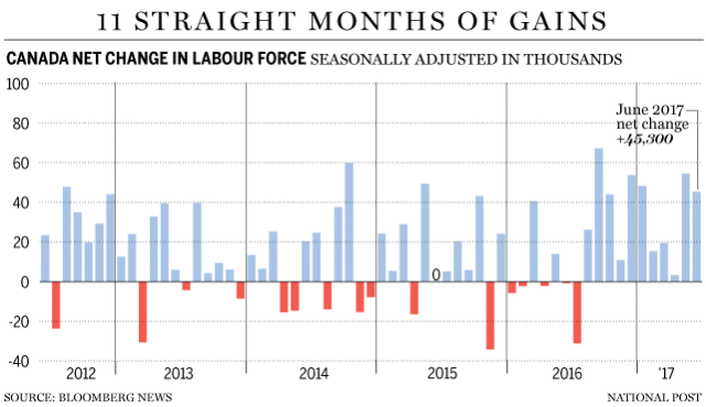 Statistics Canada will release its July jobs numbers on the heels of sparkling economic growth data and a Bank of Canada rate hike. June saw 45,000 jobs added in Canada, mostly part-time positions, but StatsCan reported this Friday that the economy had grown by 0.6 per cent in May. According to Bloomberg, earnings will also arrive from Warren Buffett’s Berkshire Hathaway Inc., which recently invested in embattled Canadian alternative mortgage lender Home Capital Group.